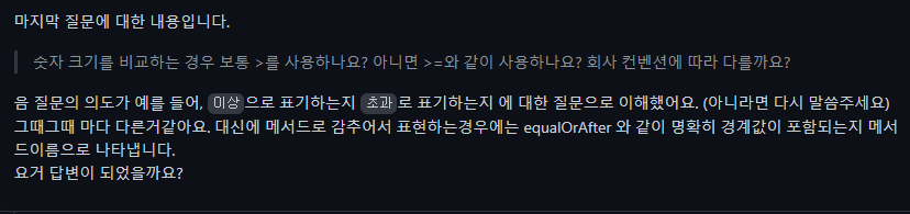 값을 비교할 때, 이상? 초과? 어떤 방식을 이용하는게 좋을까
