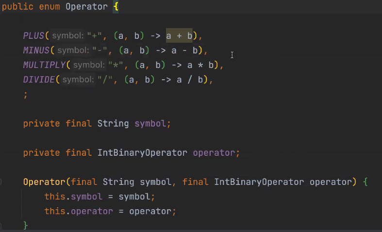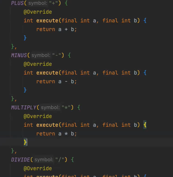 Enum은 싱글톤이다. Enum{ ADD, MINUS } ADD, MINUS 각각이 하나의 객체라고 봐도 된다.