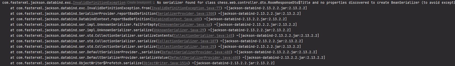 No serializer found for class chess.web.controller.dto.RoomResponseDto$Title and no properties discovered to create BeanSerializer