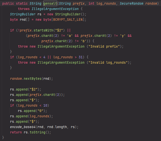 gensalt() 내부에서 보이듯이 salt()를 랜덤으로 만들어준다.