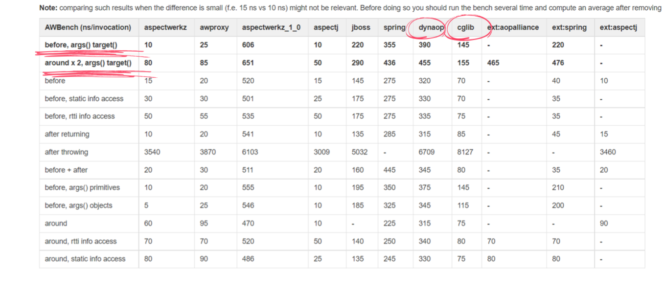 굵은 글씨가 유의미한 지표라고 한다. 보면은 CGLIB이 JDK Dynamic 프록시보다 3배 가까이 성능이 좋다는 것을 알 수 있다.