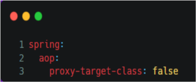 따라서 실제 우리가 스프링부트에서 인터페이스를 만들고 Proxy를 적용하려고 해도 CGLIB이 적용된다. 인터페이스를 적용했을 때, JDK 동적 프록시를 사용하려면 properties혹은 yml파일에서 proxy-target-class를 false로 바꿔주면 된다.