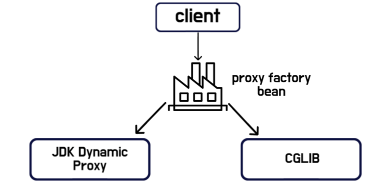 스프링에선 팩토리 빈의 구현체인 프록시 팩토리 빈 사용 -