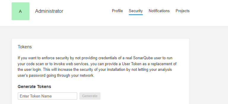 property "sonar.login", "SonarQube 어플리케이션에서 생성한 token"