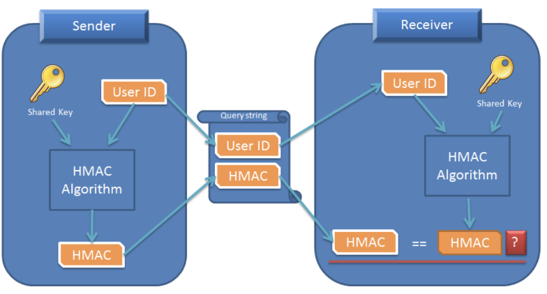 - Sender는 원본 UserId와 그 해시결과(HMAC)을 쿼리스트링 값으로 Receiver에게 전달한다.