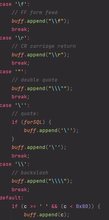 quote내부로 들어가면 아래와 같이 StringUtils.quoteJavaString() 메서드가 나온다.
