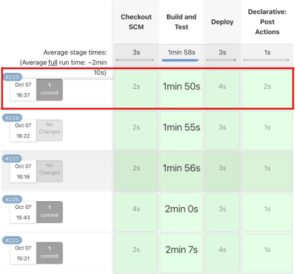 하지만 체감상으로는 여전히 느리다고 느꼈습니다. 실제 젠킨스에서는 Build and Test 가 2분이 걸리는 것을 확인할 수 있습니다.