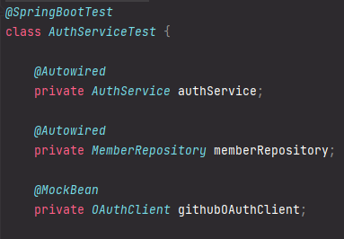 - AuthService만 다른 service테스트에 없는 mock이 있어서 다시 뜬다.