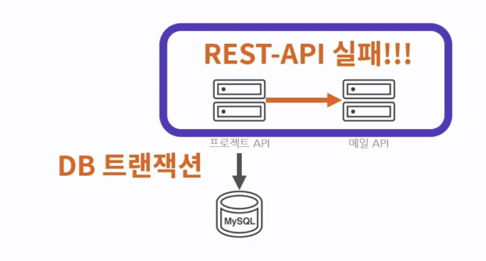 일반적으로 @TransactionalEventListener을 통해서 DB 커밋 후, rest api로 발송할 수 있다. 이러면 db에 save 되는 것을 확신하고 api를 쏘기 때문에 걱정이 없을 수 있다. 하지만 아래처럼 api에서 실패가 발생할 수 있다.