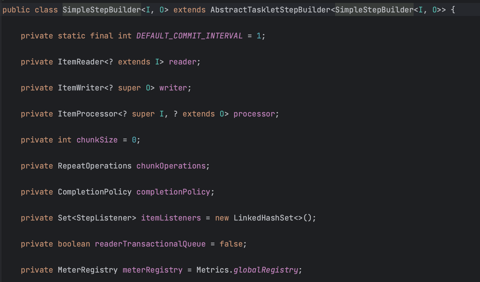 StepBuilder의 구성을 보면 chunkSize를 입력해야하는데 이때, null이 들어간 상태로 만들어지기때문에 정상적으로 step빈이 만들어지지 않는 것이다.