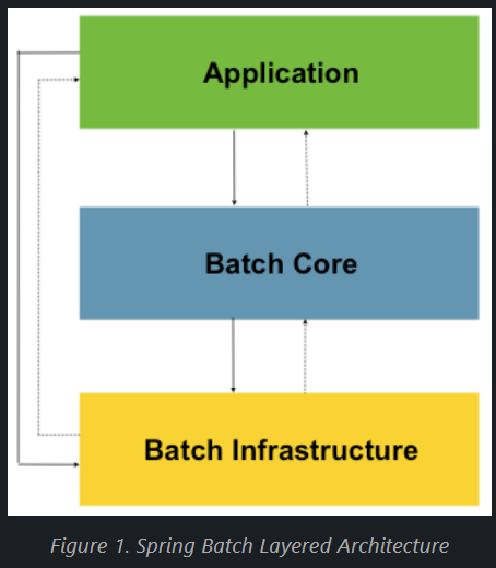 - Application: 애플리케이션에는 Spring Batch를 사용하여 개발자가 작성한 모든 배치 작업과 사용자 정의 코드가 포함되어 있다.