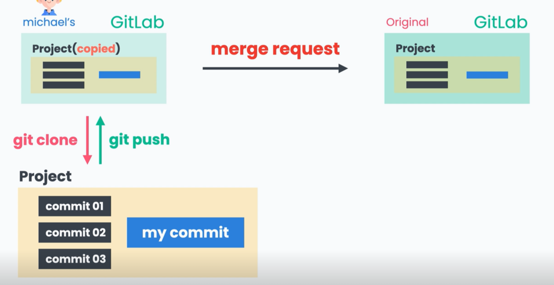 fork로 복사를 끌어와 나중에 MR로 original에 집어넣는다.