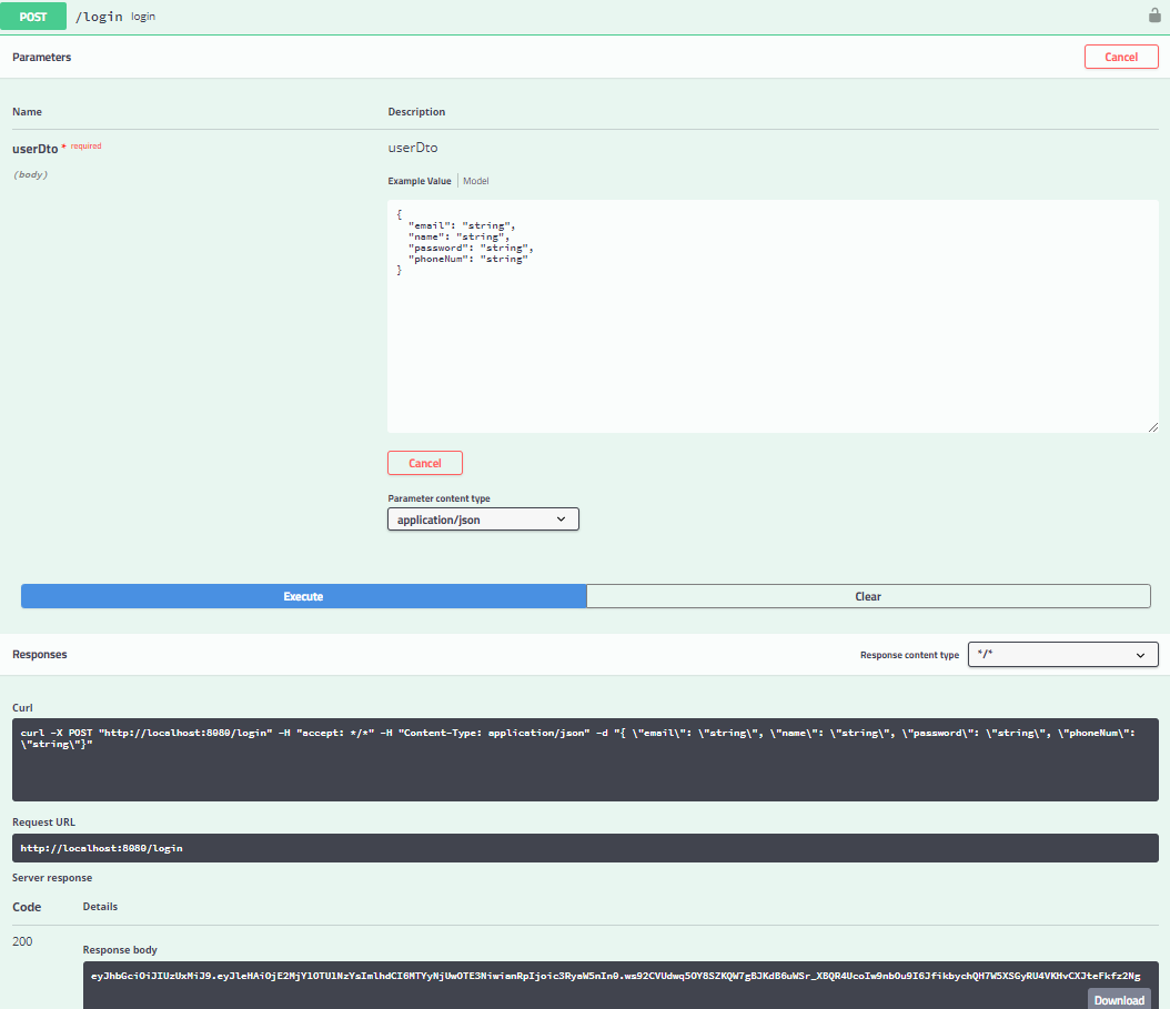 여러번 수정하고 하느라 패키지가 개판(?)이긴한데 일단 들어오기는 성공했다. 이제 회원가입 api 테스트할겸 사용해보자