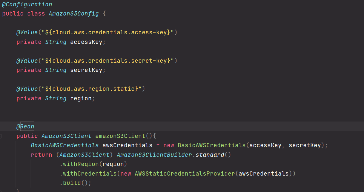 aws.yml, AmazonS3Config, S3Uploader 3개의 파일을 만들어 줍니다.