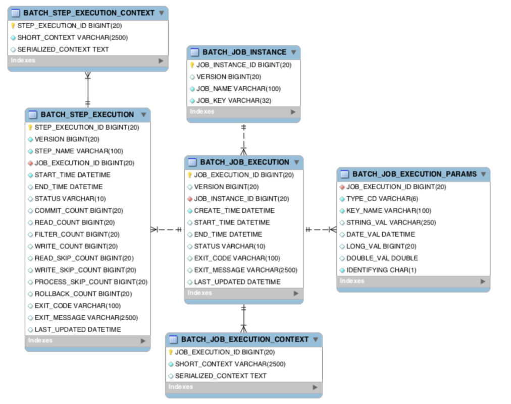 스프링 배치에서는 작업을 수행하면서 일련의 상태에 관한 메타 데이터들을 메타 테이블에 저장해서 실패한 작업에 대한 기록을 남겨 실패에 대한 대비를 준비할 수 있게 도와주는 역할을 하게 됩니다.