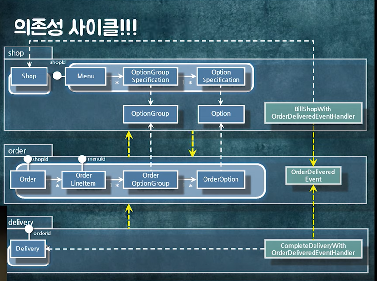 - Order -> shop 쪽으로 단방향으로 된다.