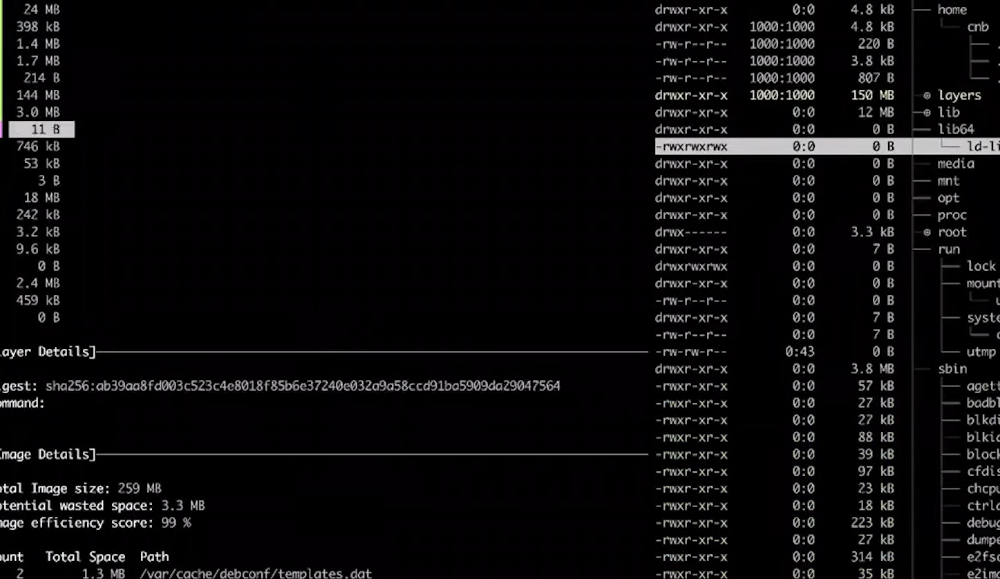 위처럼 스프링 빌드 플러그인을 통해서 도커 이미지를 만들어 줄 수 있다. 그리고 dive 툴을 이용해서 파일들을 분석할 수 있다.