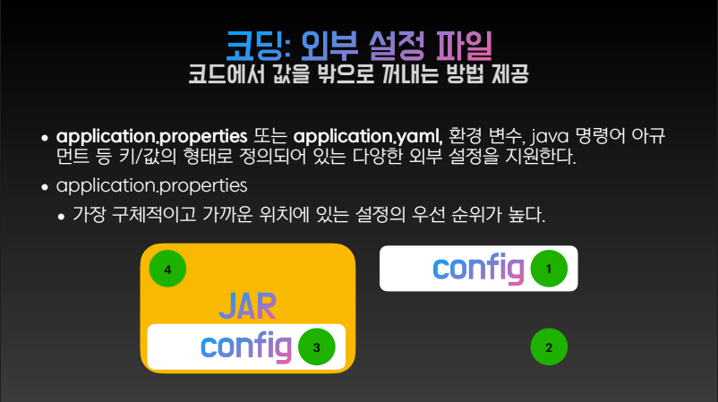 - 기본값으로 애플리케이션 안에 두고 특정 값들만 변경할 때 활용 가능하다.
