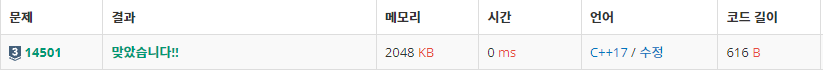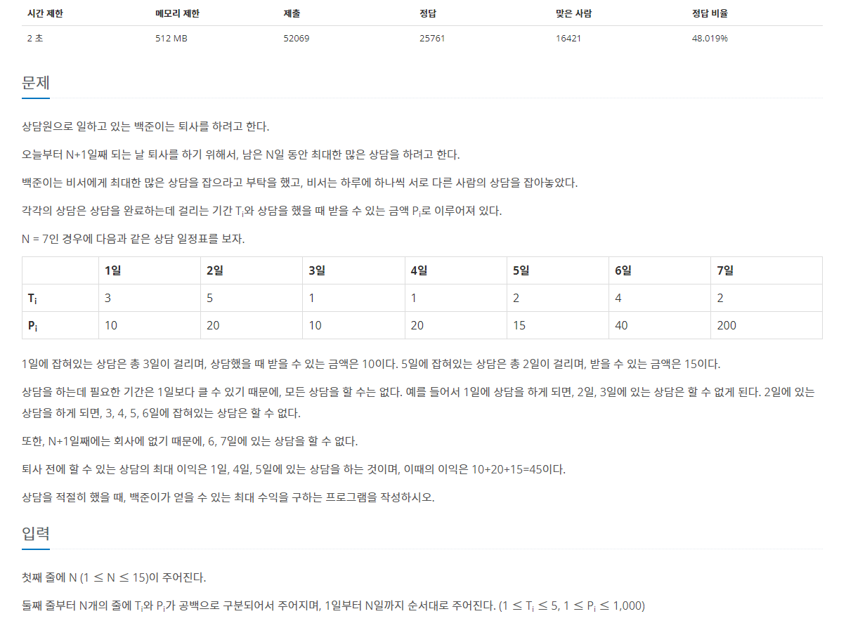 [백준] C/C++ 퇴사 [삼성 SW 역량 테스트 기출 문제 ] 본문