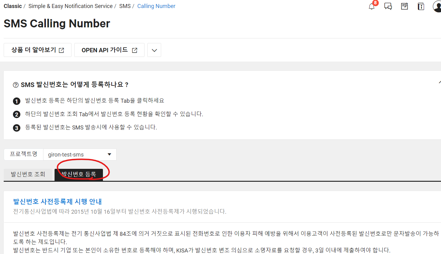 발신번호 등록을 해주고 간편하게 SMS 인증을 선택해 줍니다.