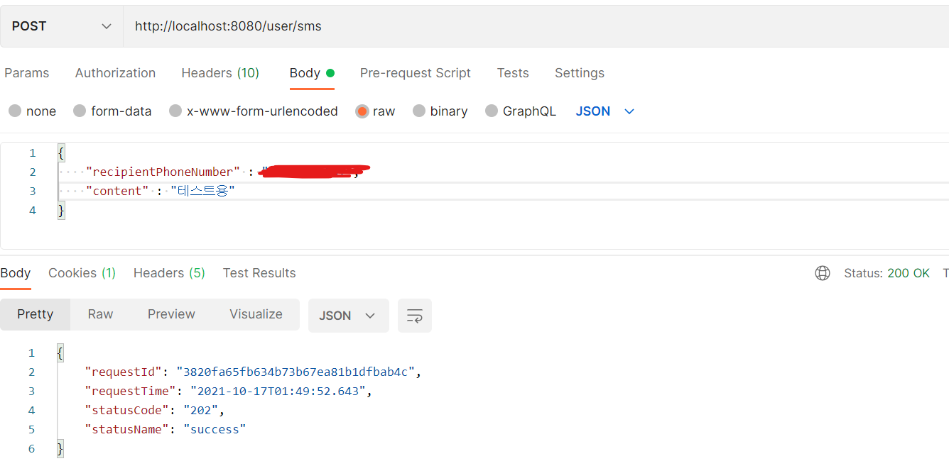 public ResponseEntity<SmsResponse> test(@RequestBody Request request) throws NoSuchAlgorithmException, URISyntaxException, UnsupportedEncodingException, InvalidKeyException, JsonProcessingException {