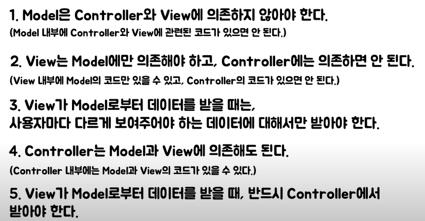 따라서, View와 Model 간의 의존성을 최대한 낮게 설계한 경우 좋은 MVC 패턴이라 할 수 있다.