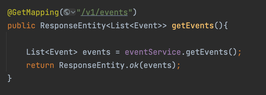 localhost:8080/v1/events를 호출하면 받아온 api를 통해서 결과가 잘 나온다!
