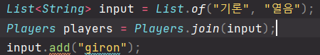여기서 궁금한 건 List.of()로 선언해도 add매서드를 사용할수는 있다. (컴파일 에러 발생 x)